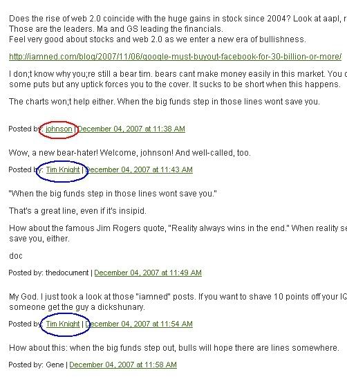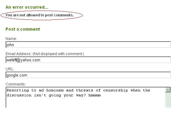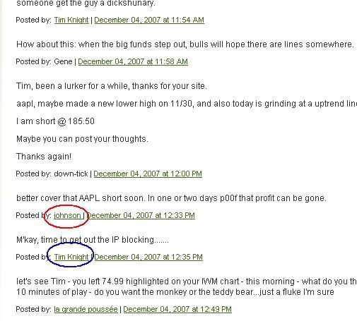Last week in my extended segment about blogging I wrote about Five Reasons Why Blogs Fail, and one of those reasons is censorship. A real example of censorship that I recently expierenced was on December 4th when I merely posted an opposing view on Tim Knight’s Slopeofhope stock trading blog. My comments were innocuous and non-inflammatory, but Tim got his panties in a bunch and decided to censor me by blocking my IP after making a few ad hominem attacks.